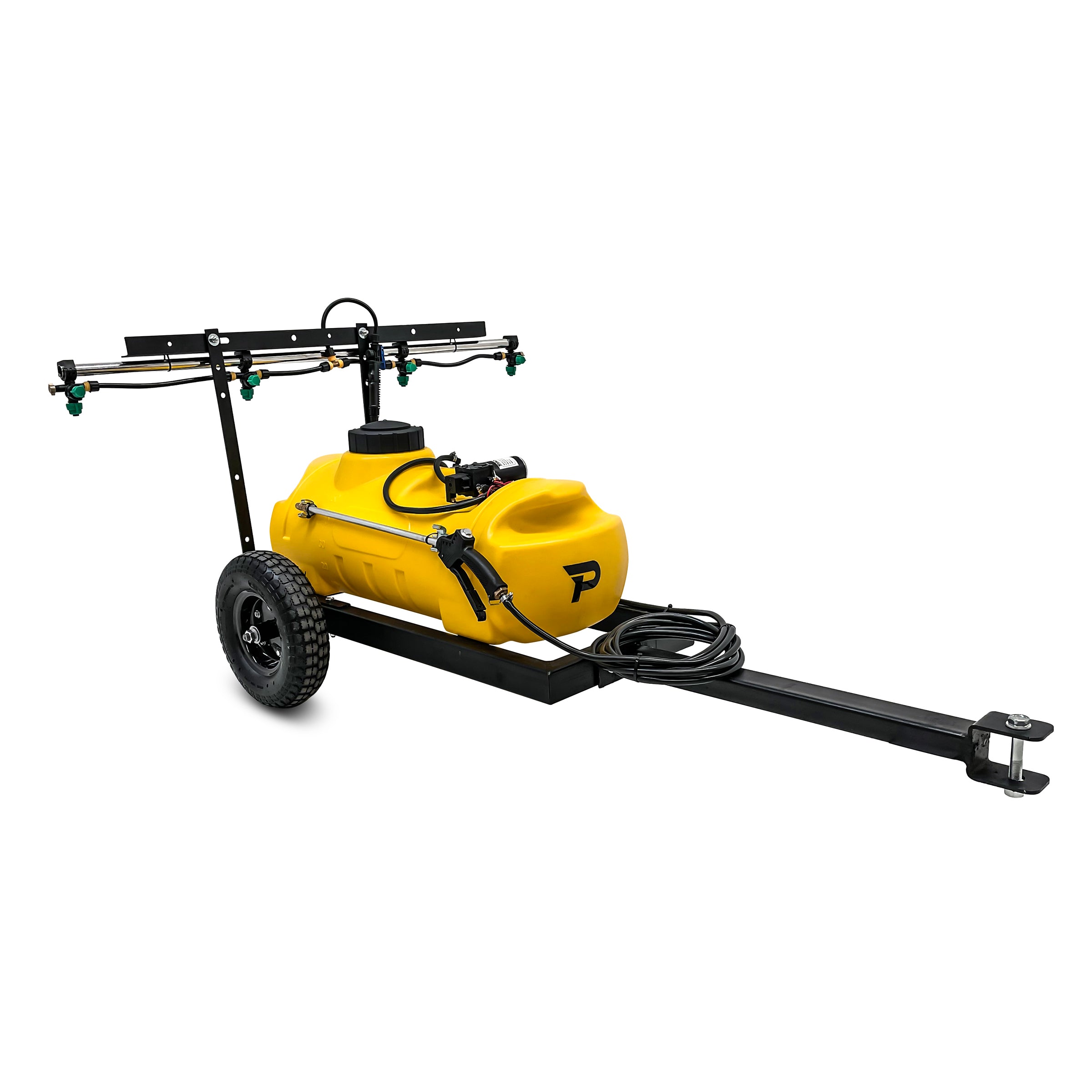 A 12 Volt sprayer kit has endless applications. Easily mounted to ATVs, quad bikes, four wheel motorcycles, mowers and utilities. The rear boom allows for broad spraying as you ride while the hand held spray nozzle allows you to do spot spraying from on the bike or while walking. Great for spraying for weeds and other pests.