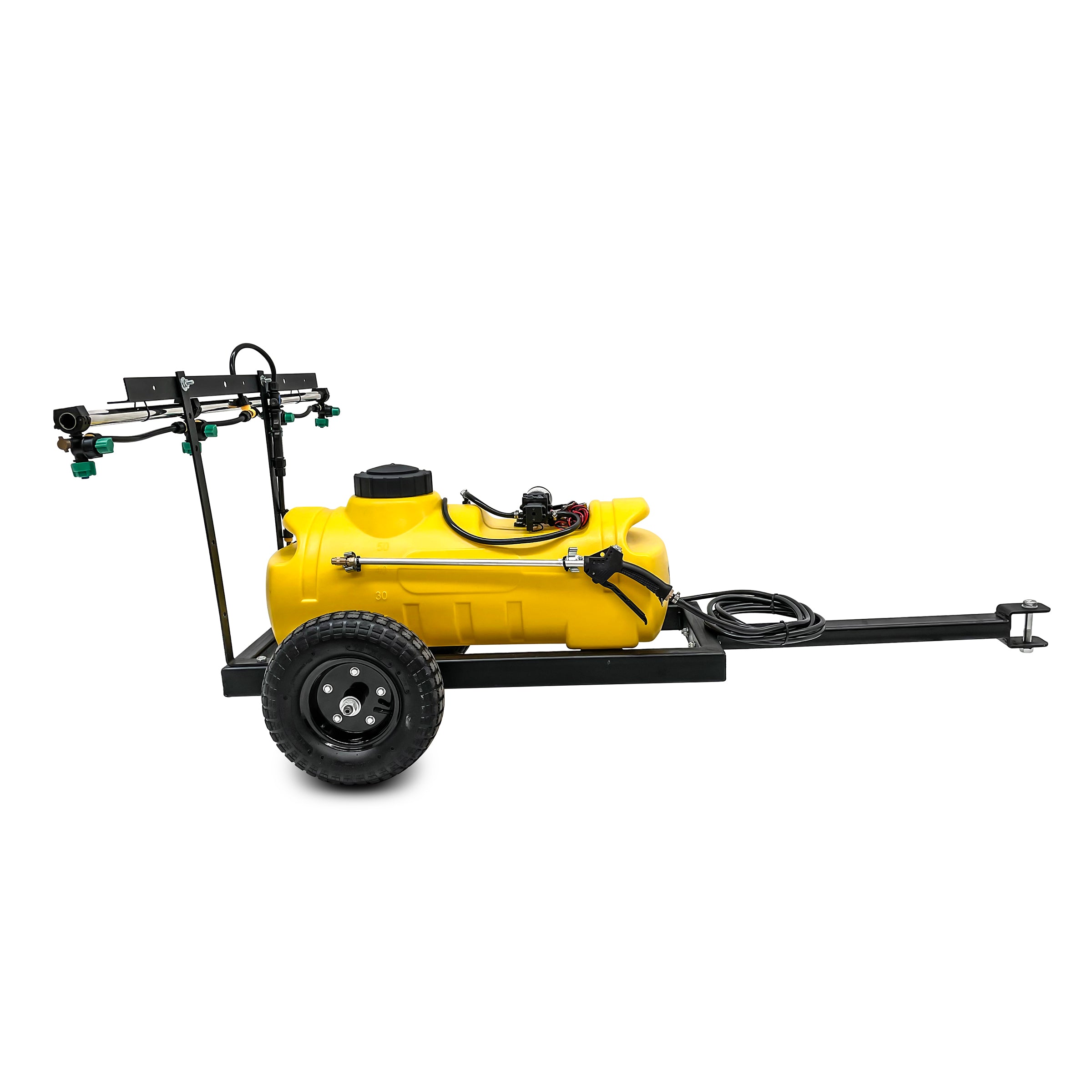 A optional trailer is available which is designed to hold either the 50L or 100L tank filled with fluid. Incorporating a trailer makes it simple to quickly attach your sprayer to your ride on mower, quad bike or ATV.